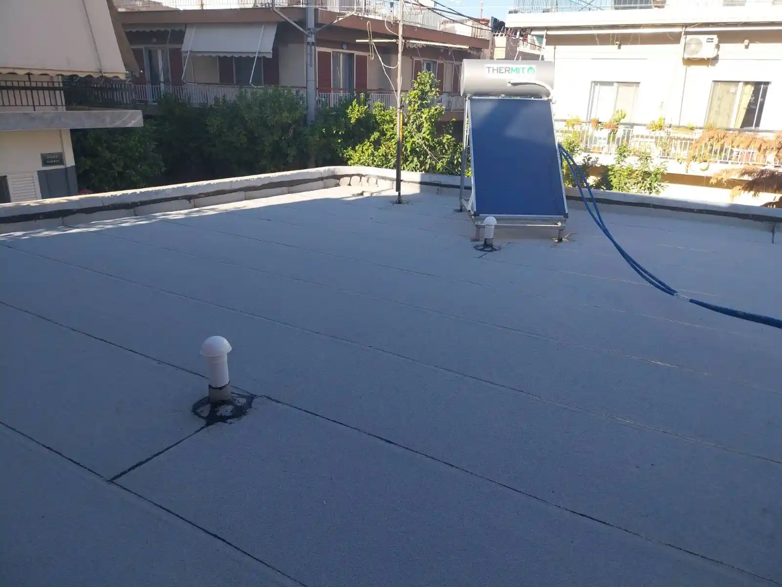 Για να έχει επιτυχία αυτή η εφαρμογή θα πρέπει να καθαριστεί η ταράτσα από τα υπολείμματα των ασφαλτοπάνων και του ασταριού πλήρως. Δεν προτείνουμε αυτού του είδους την επέμβαση γιατί πιθανότατα θα αστοχήσει