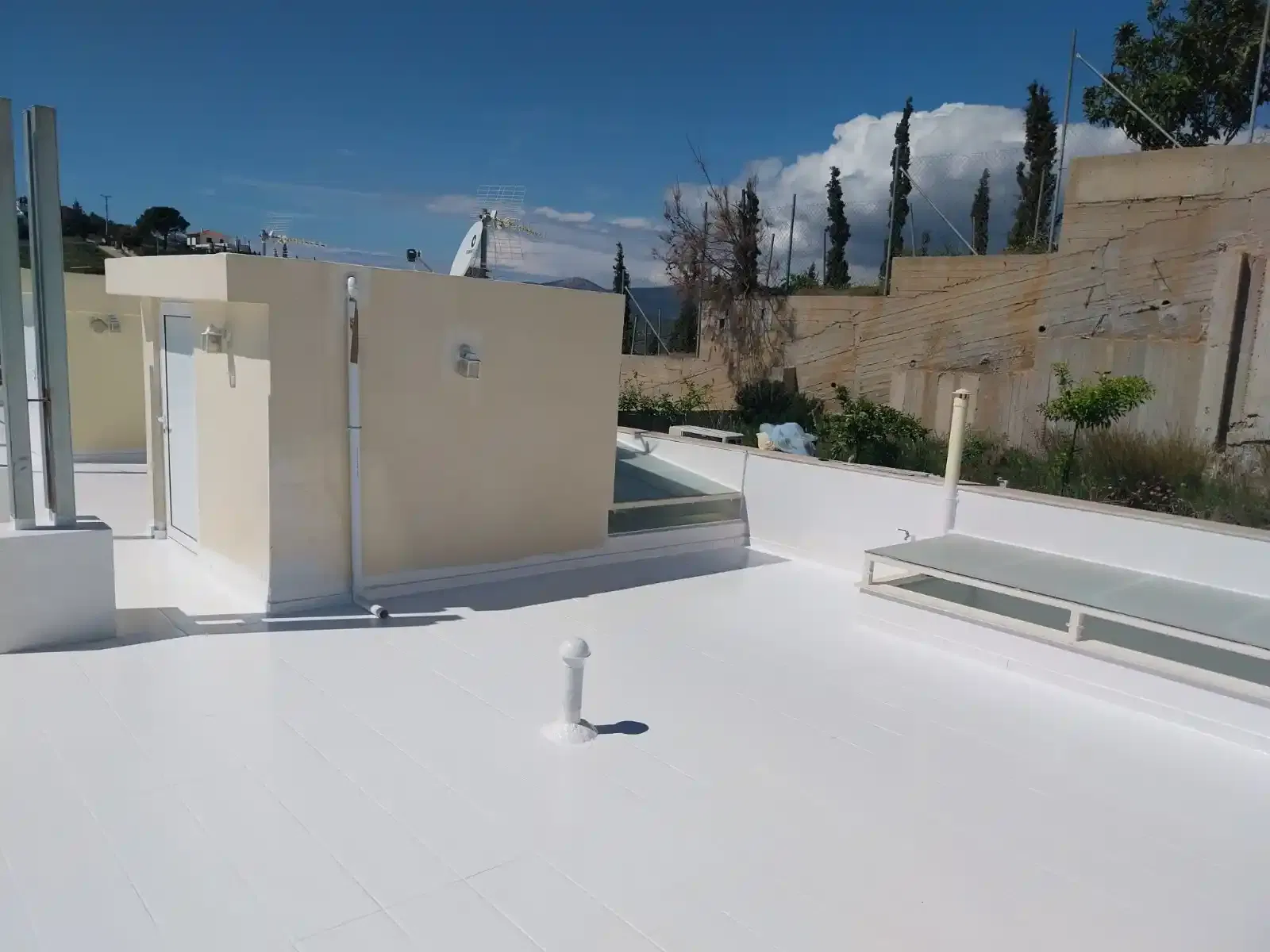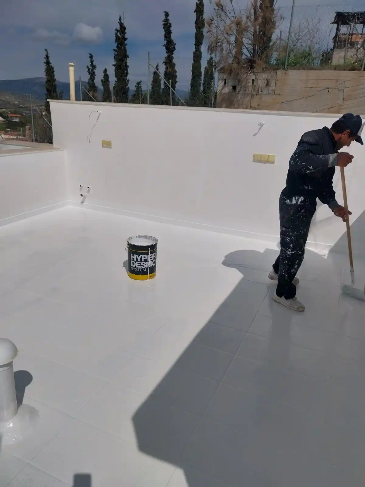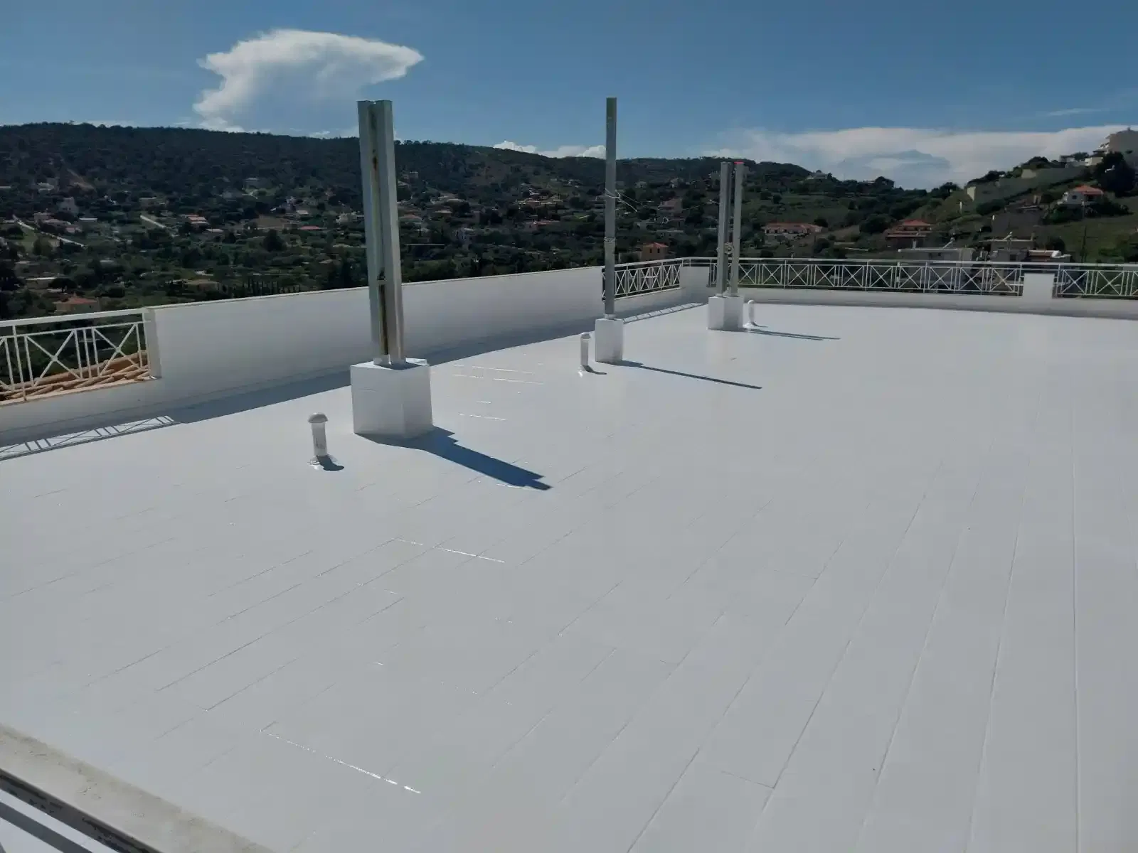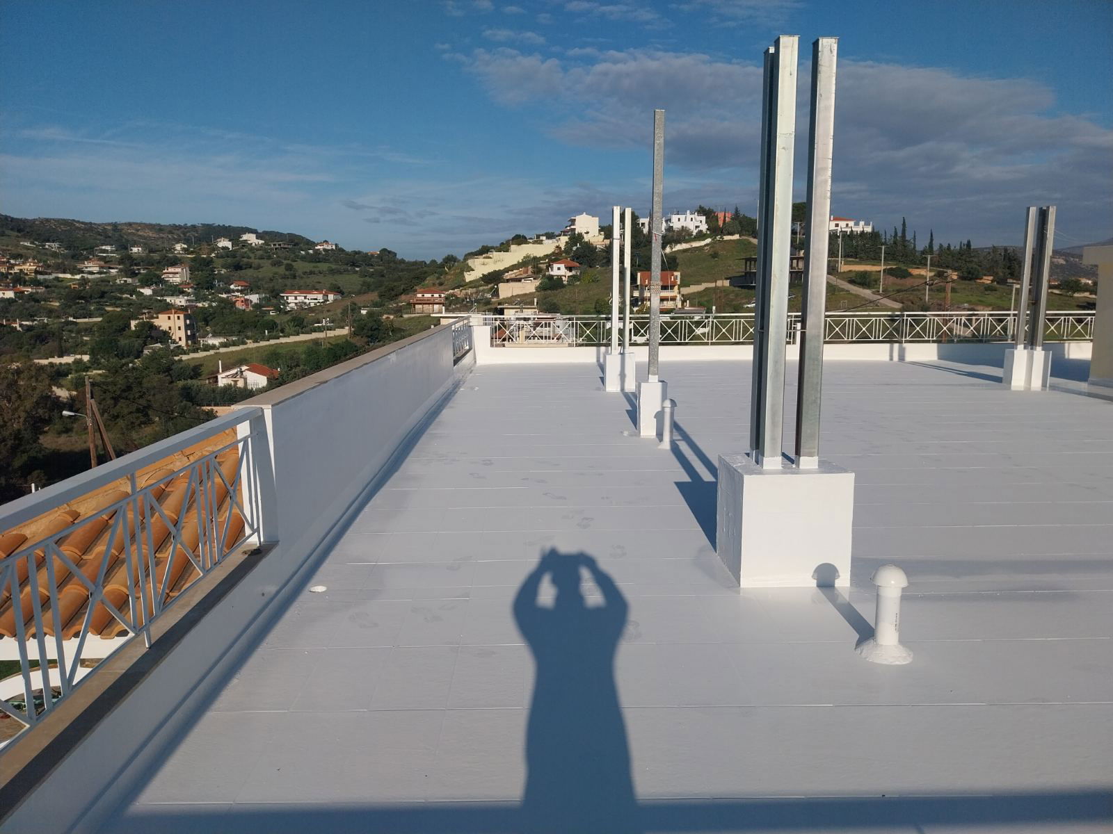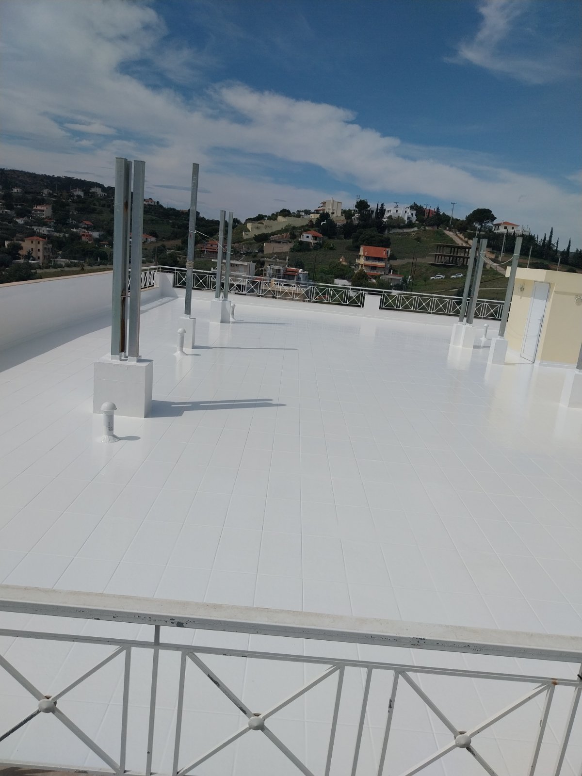 Η εφαρμογή έγινε σε μονοκατοικία στο Λαγονήσι Αττικής. Η ταράτσα αποτελούνταν από θερμομόνωση με πολυστερίνη και κονία και τελική επίστρωση πλακιδίων. Η μεγάλη επιφάνεια των 300τ.μ. και οι συχνές διαστολές της, ρηγματωσαν τους αρμούς με συνέπεια να εισχωρεί υγρασία.